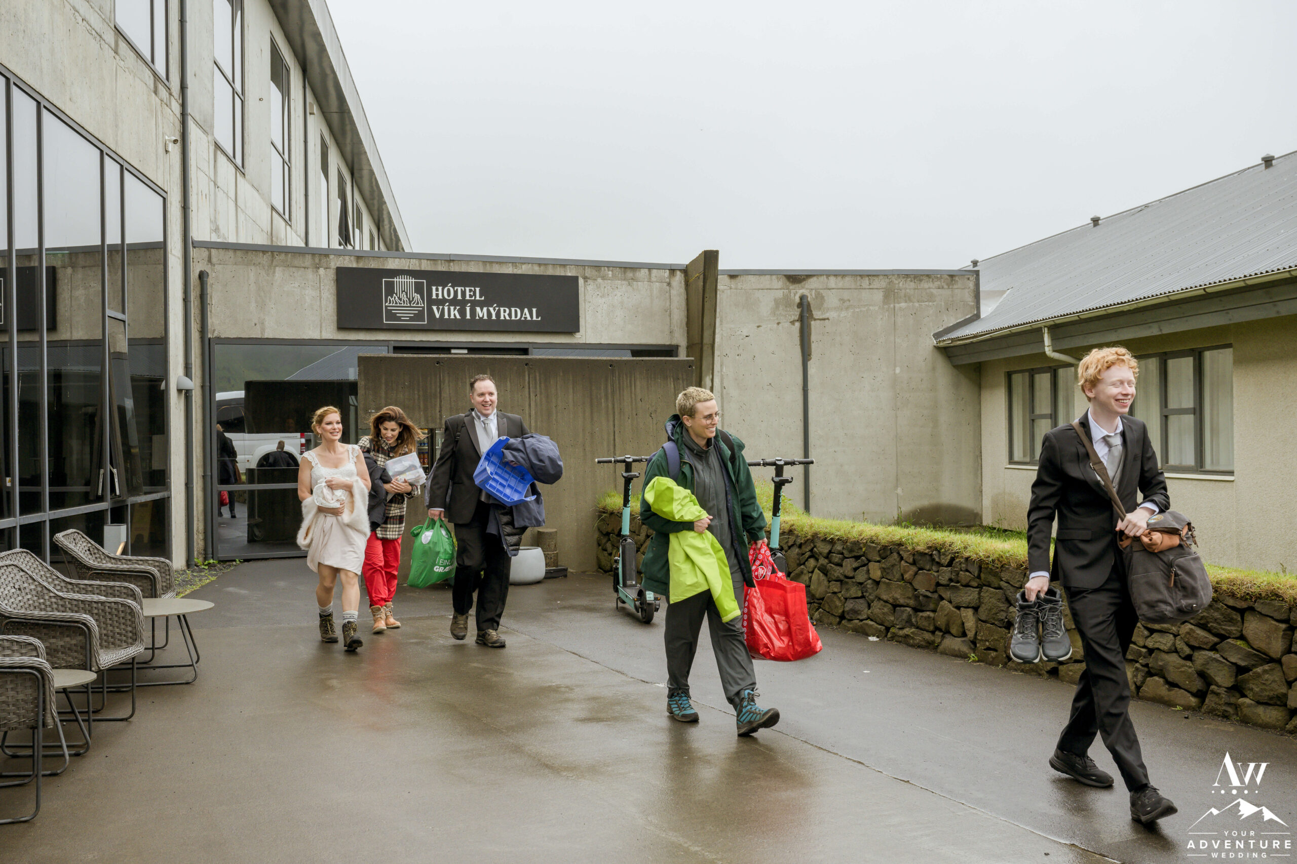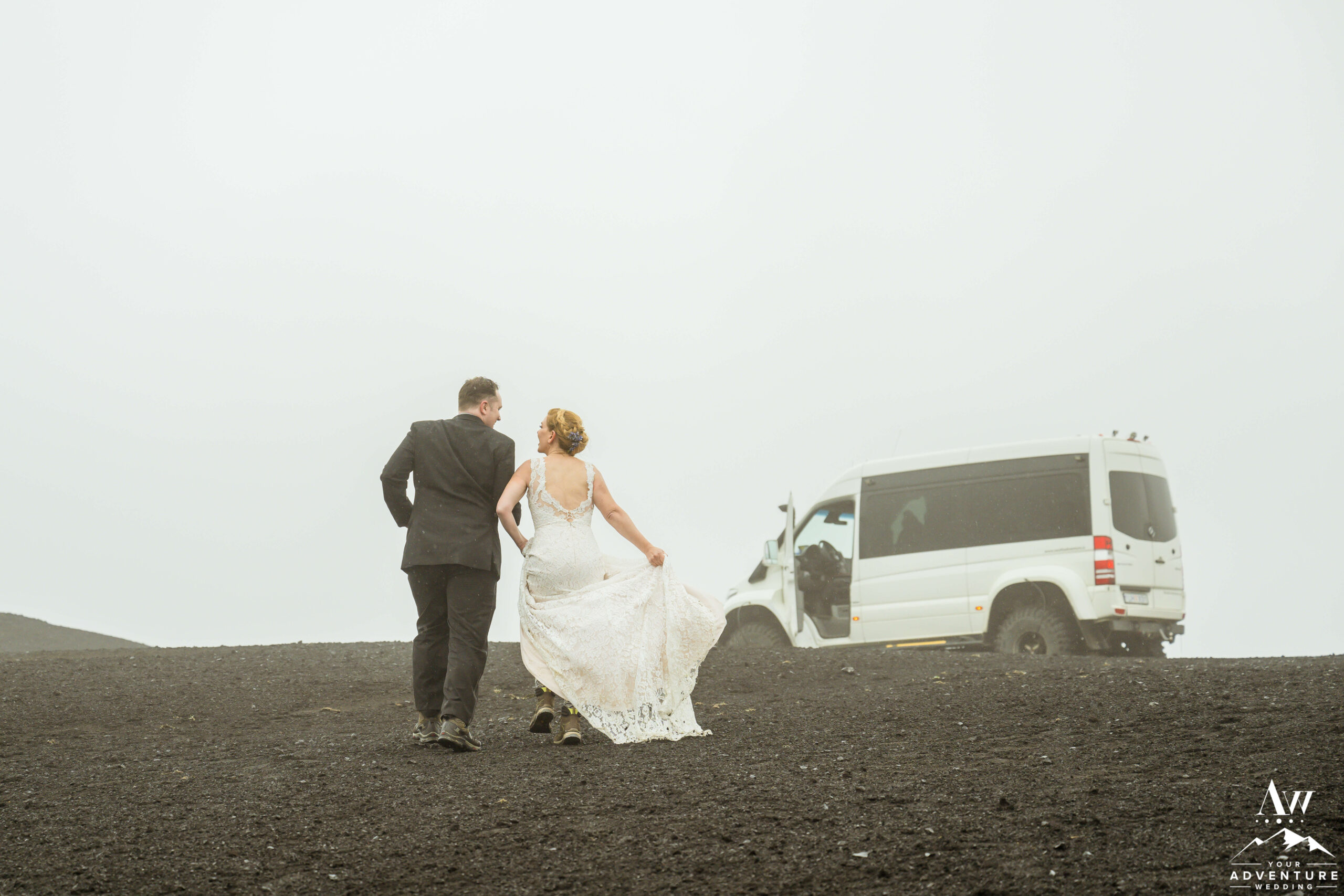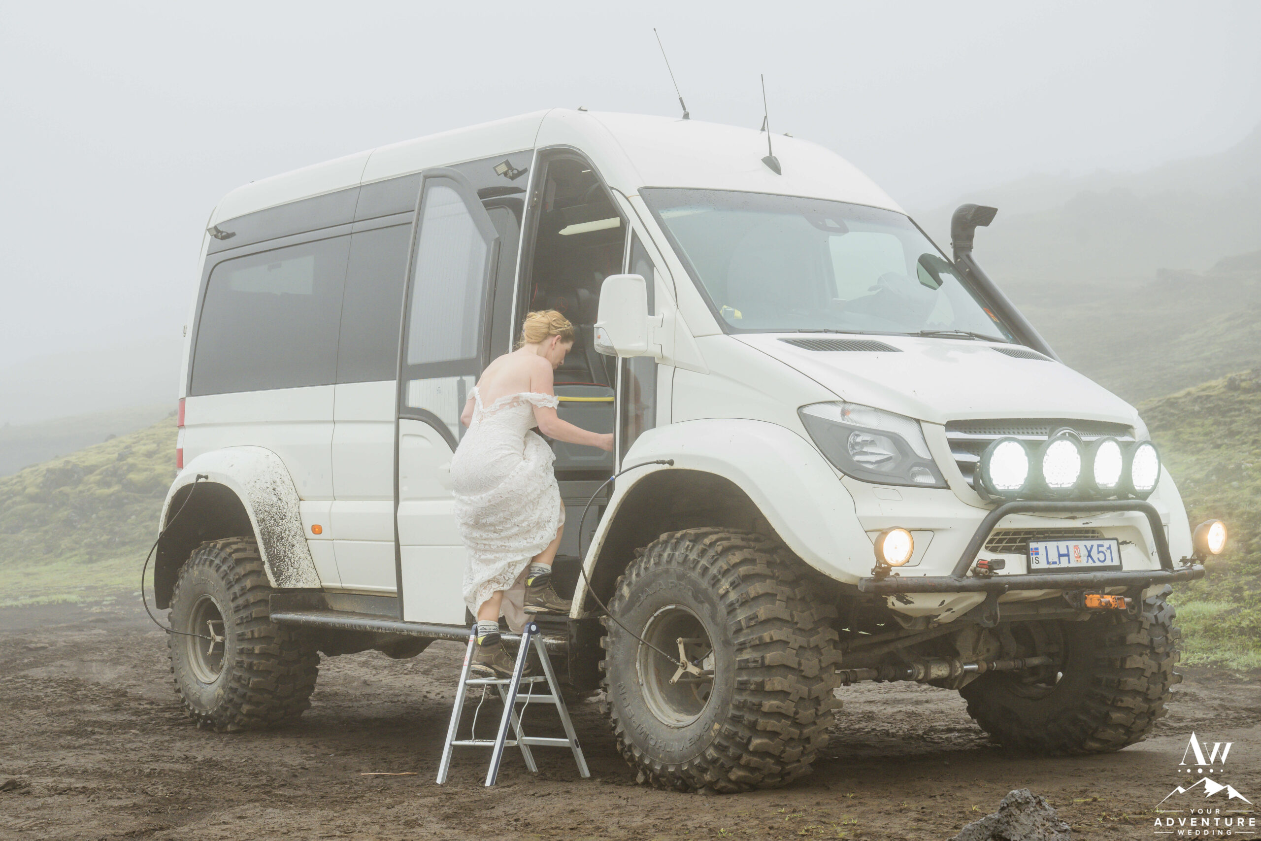 First, it all begins early in the morning with our local Iceland wedding photographer crafting the perfect setups for Joan’s wedding dress. Second, the pair had a few of their loved ones join them as they got ready and for the journey. Third, as soon as the super jeep arrived the group grabbed their “go bags” and loaded to embark!