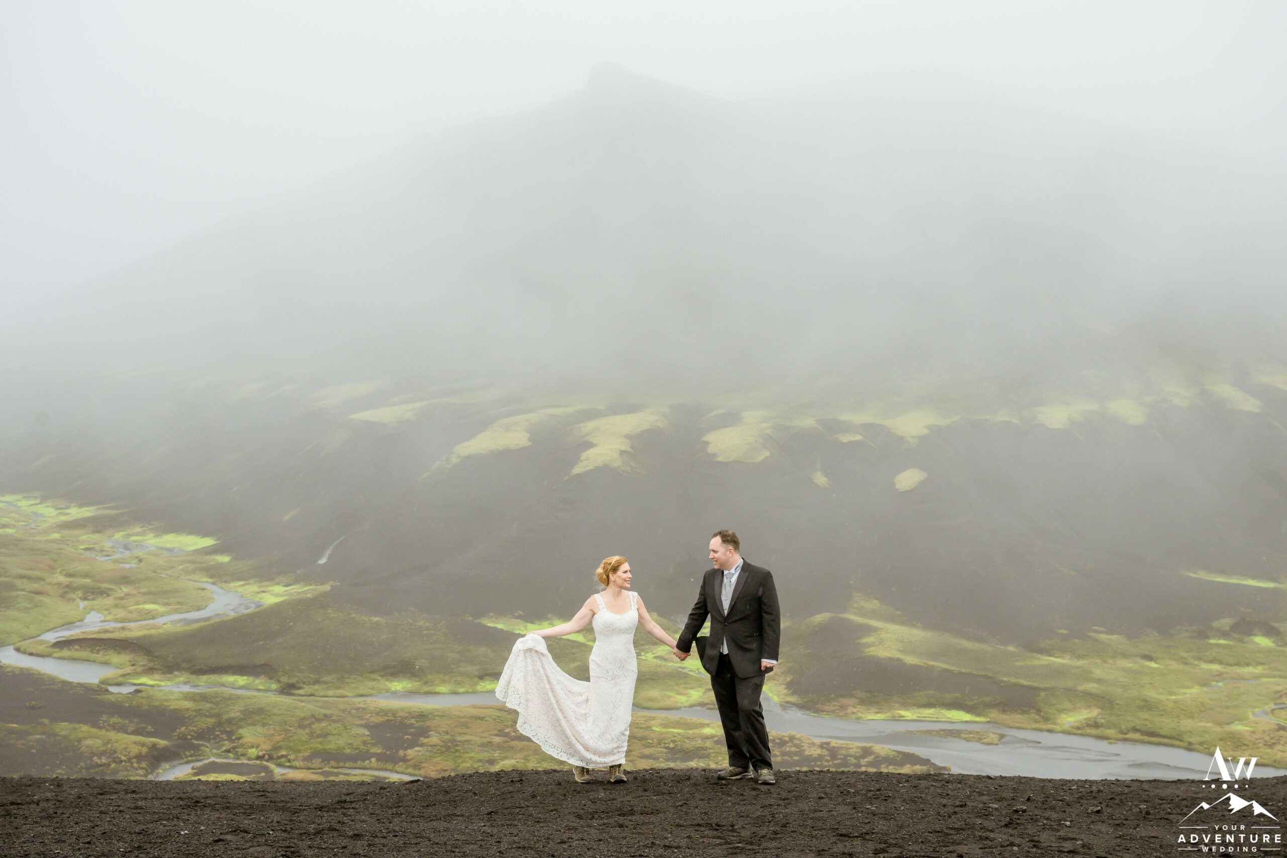 As the morning turned to afternoon, the adventure continues with venturing deep into the Highlands… Meanwhile they were met by a rolling blanket of fog. But then again that is the weather in Iceland for you, ever changing! However, instead of obscuring the view, they chose to look at the experience as adding a layer of mystery… In fact, some might even say that this foggy Highland discovery gave the couple the sense they’d stepped into a ghost story!