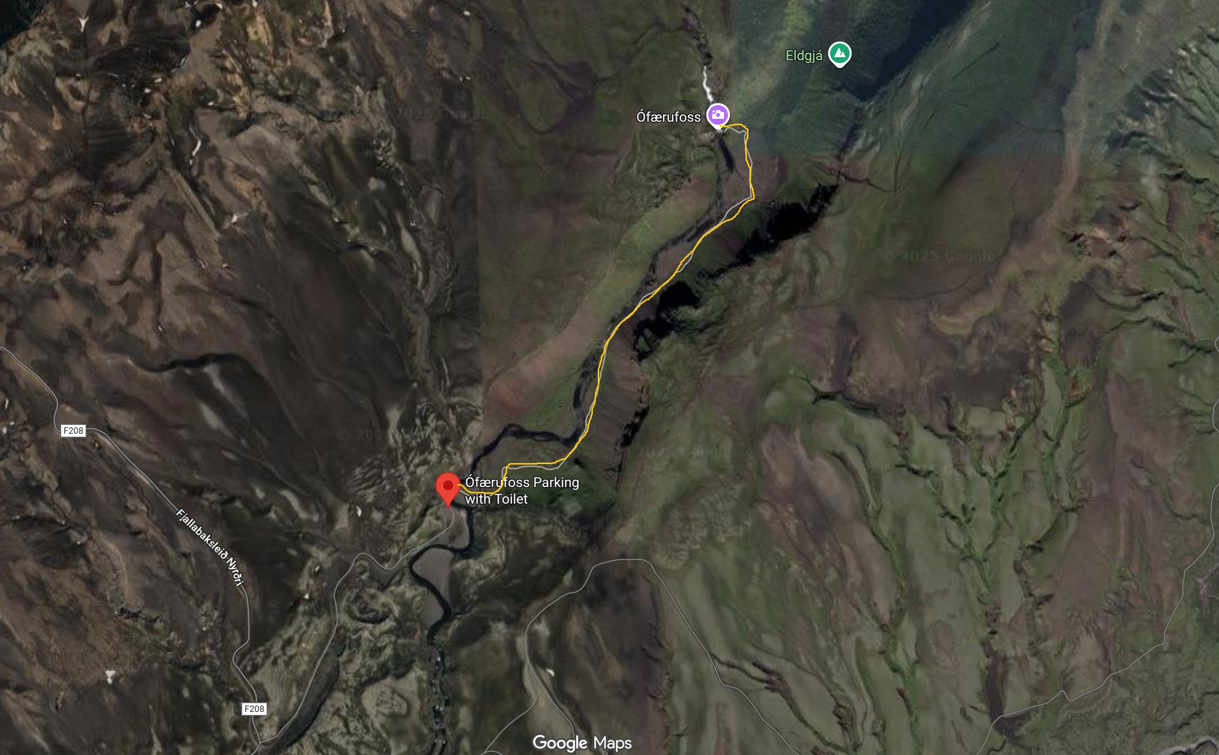 Lastly, you might wonder about parking… There are multiple small parking lots. The shortest hike to Ófærufoss starts right after a river crossing on F208. Which is the main Eldgjá ranger station car park offers a longer, but still moderate trail.