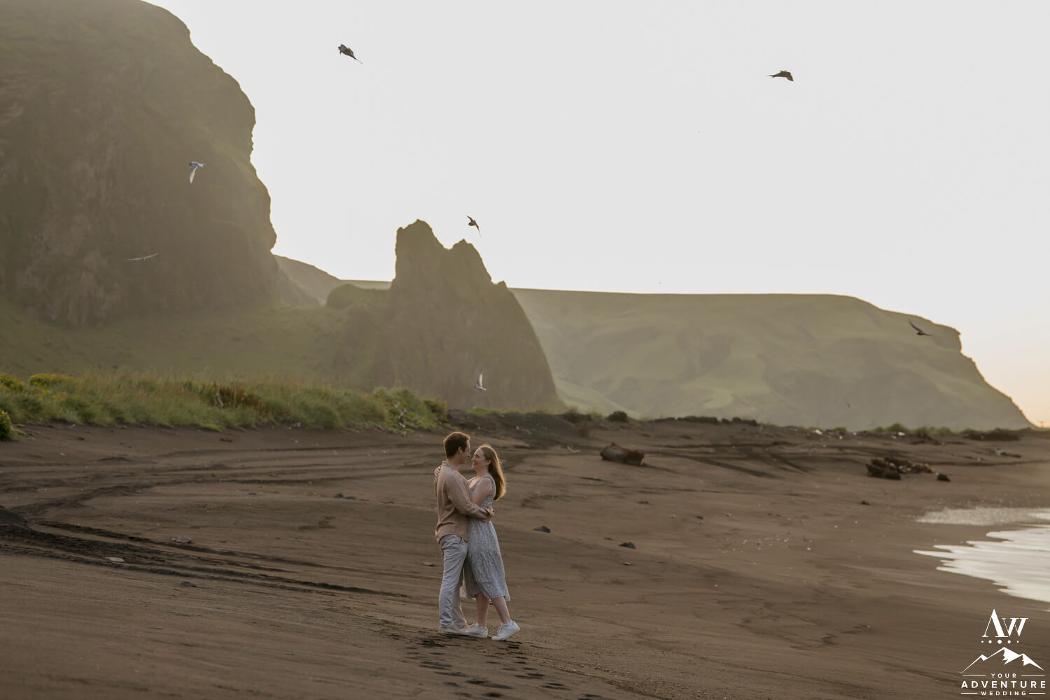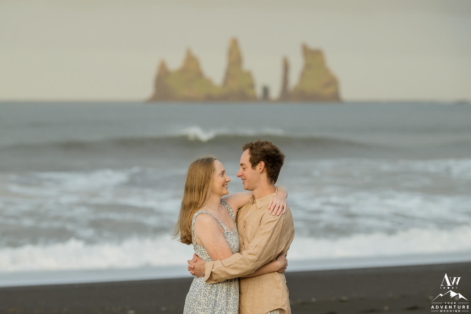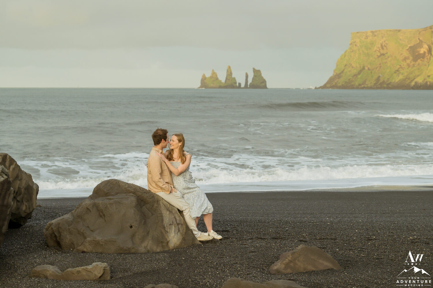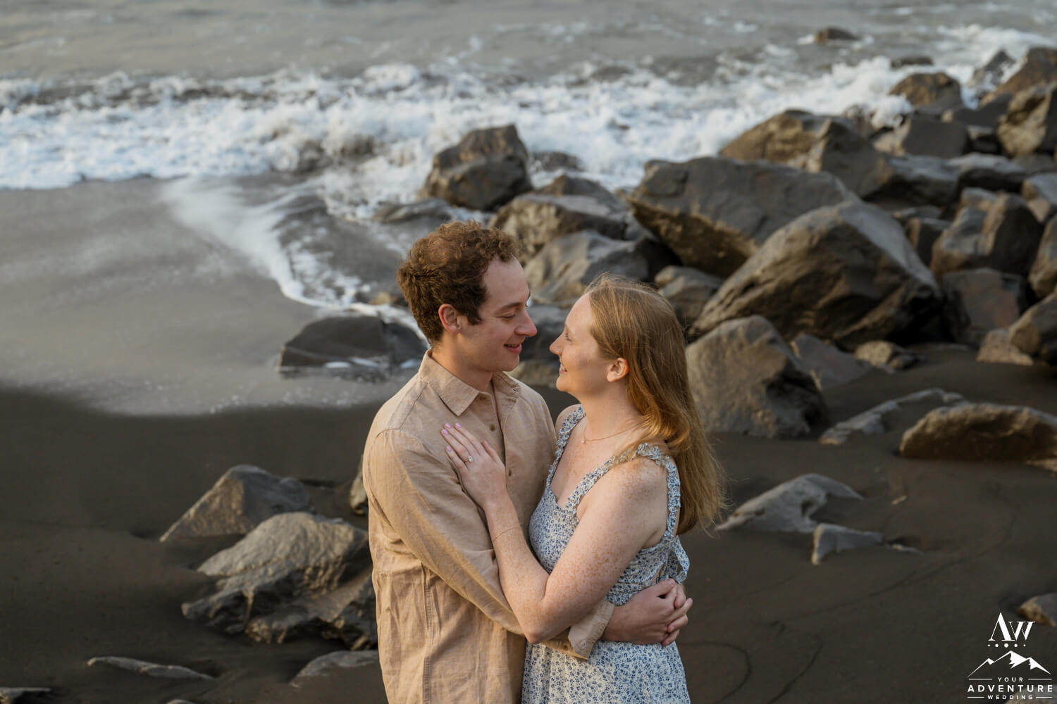 One of the best parts of being a Vik Engagement Photographer are these quite sessions at sunrise… Nothing more magical in that moment! After all, check out her stunner of an engagement ring, her flowing dress, and the way he looks at her!