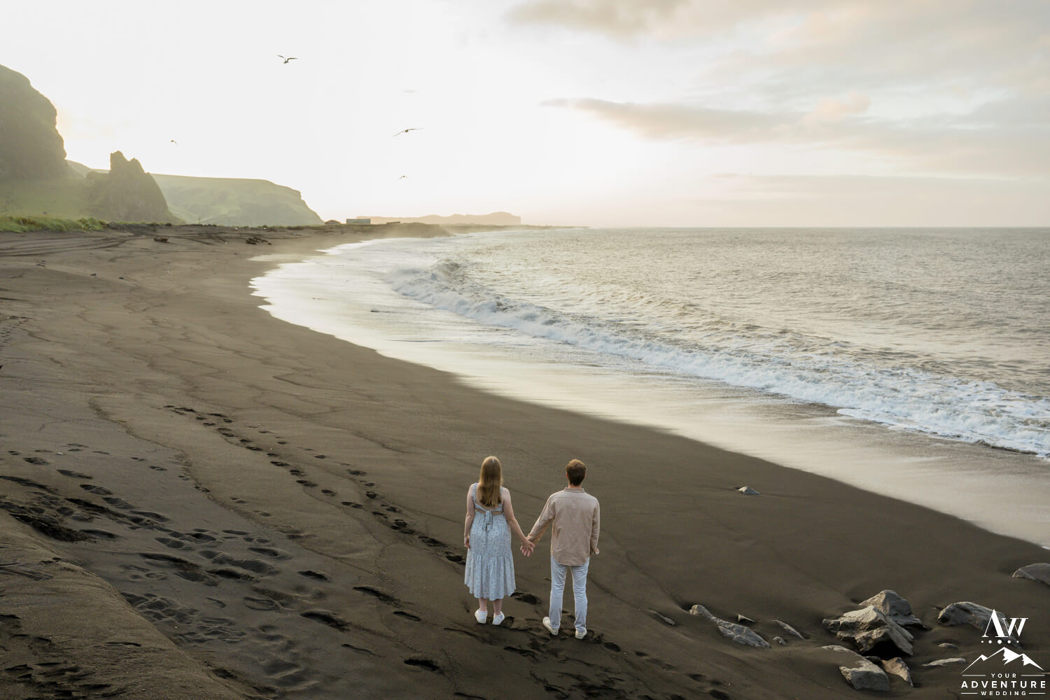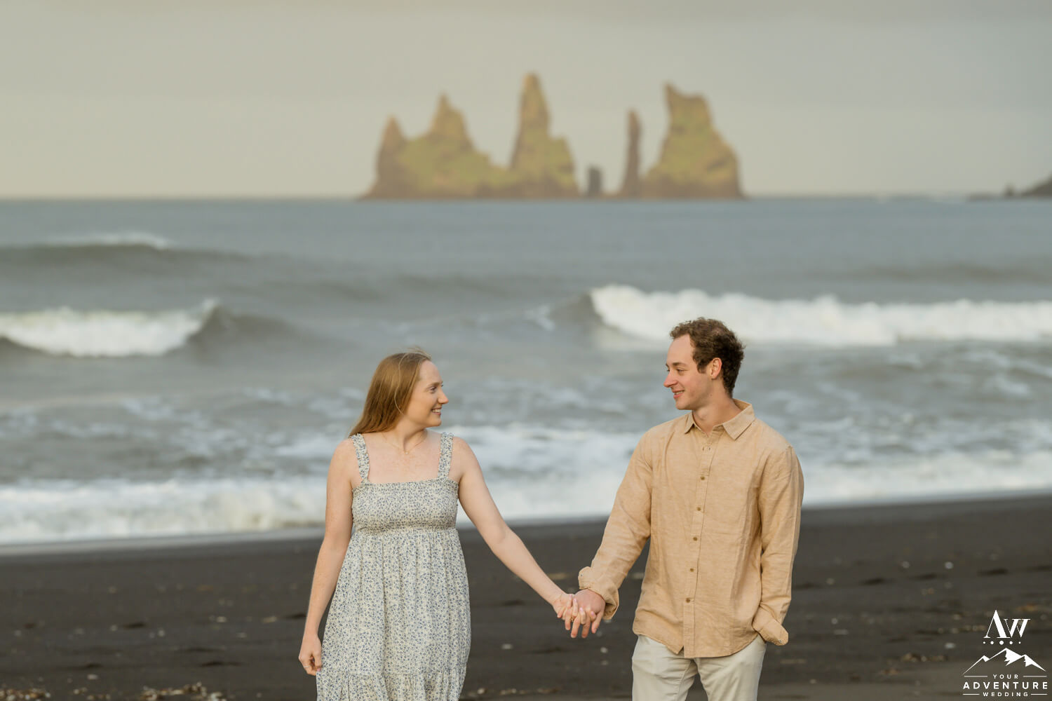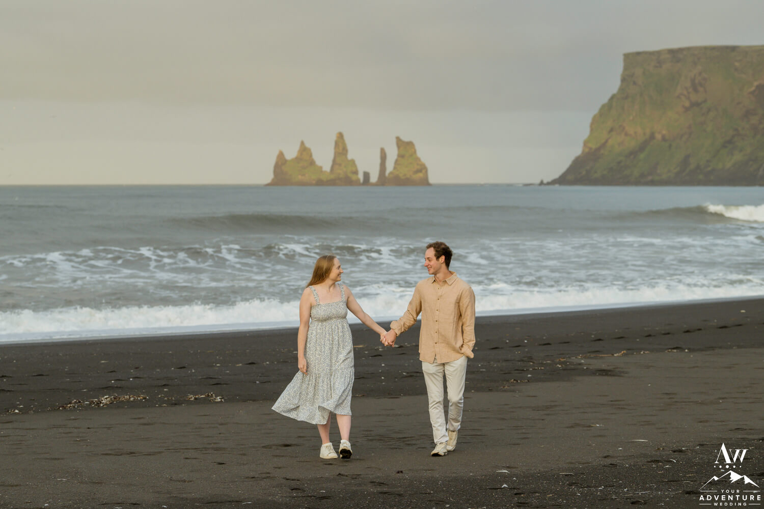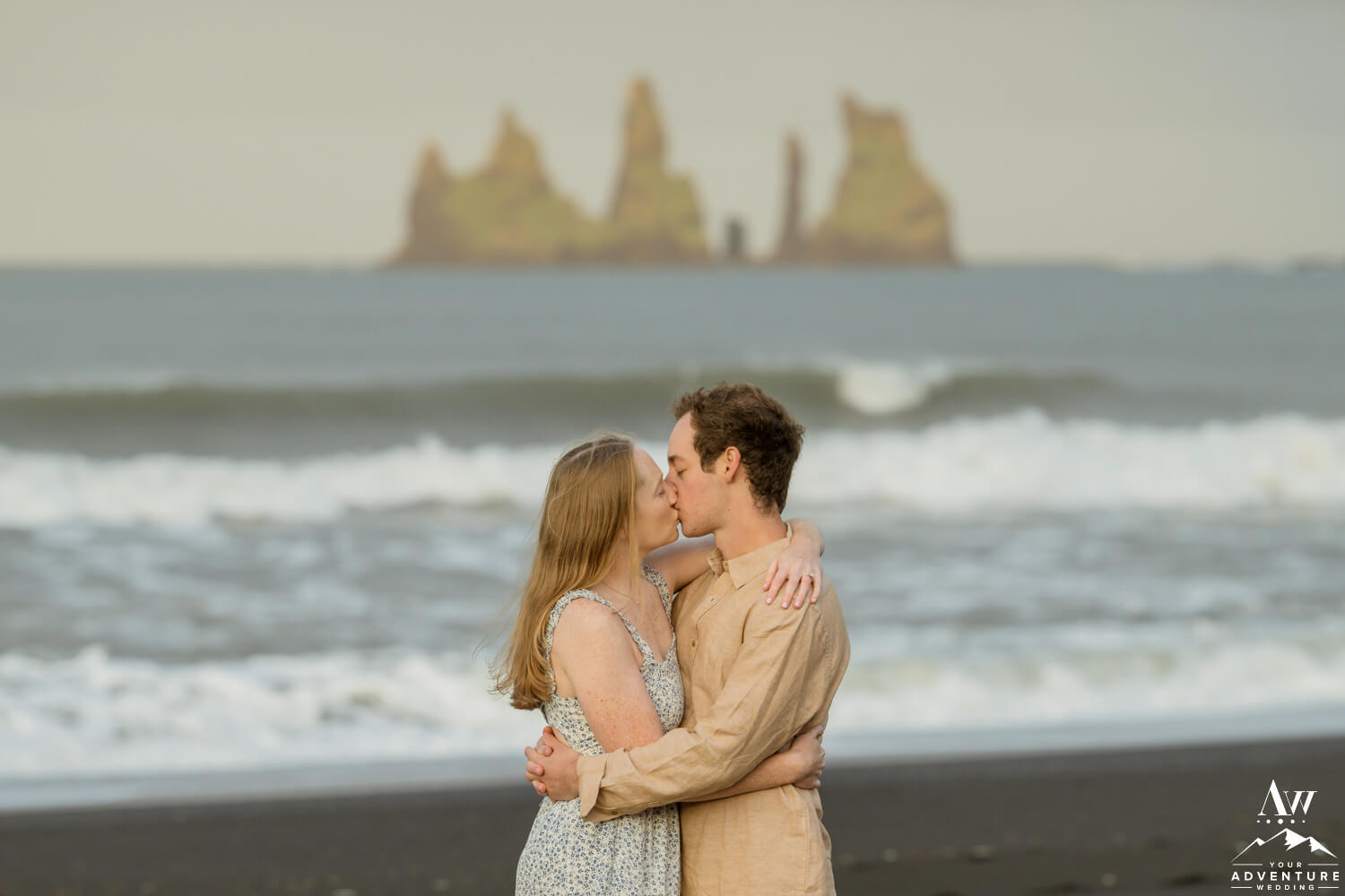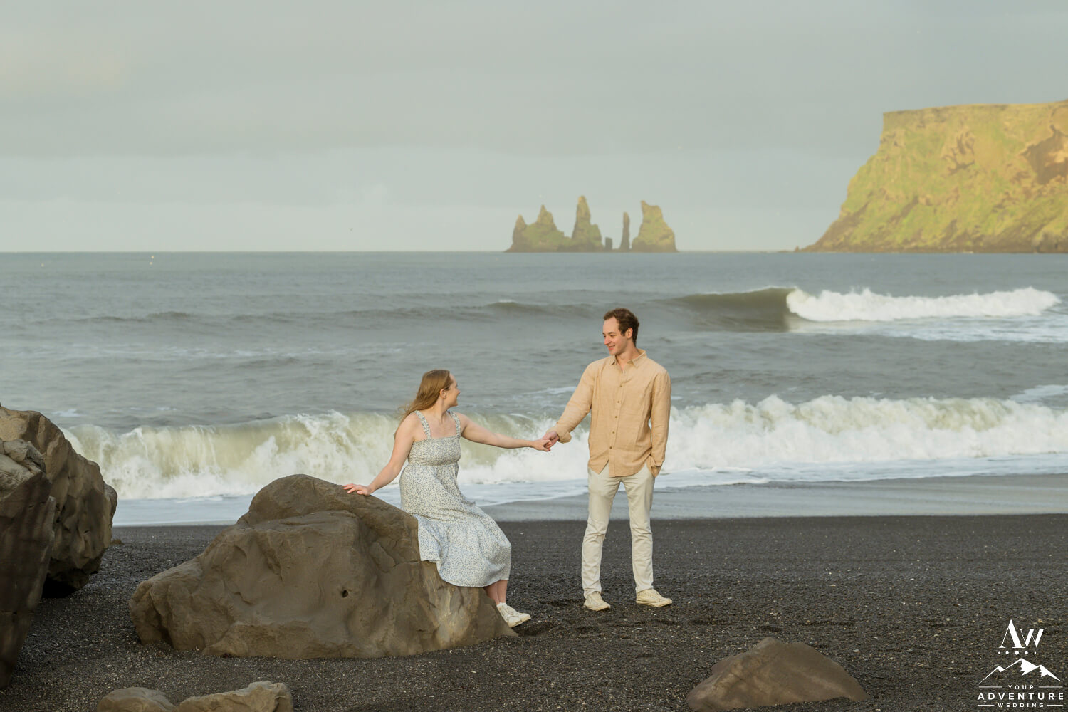 One of the best parts of being a Vik Engagement Photographer are these quite sessions at sunrise… Nothing more magical in that moment! After all, check out her stunner of an engagement ring, her flowing dress, and the way he looks at her!