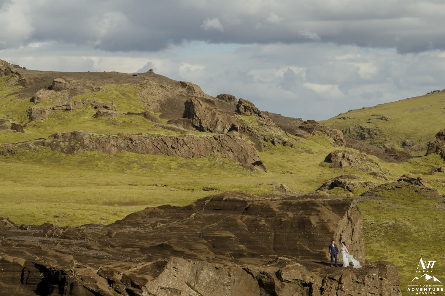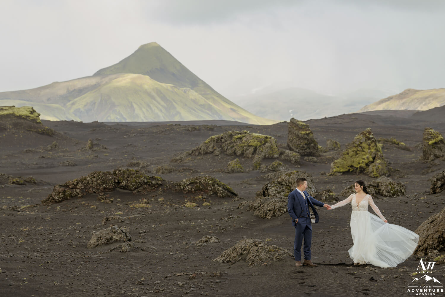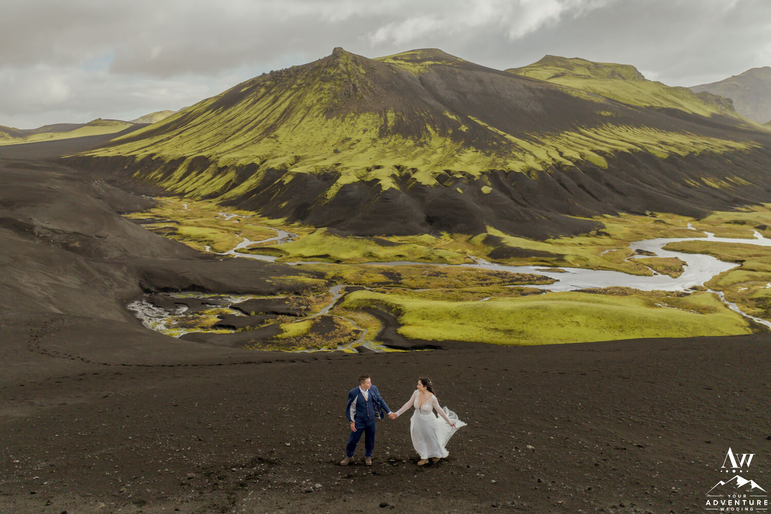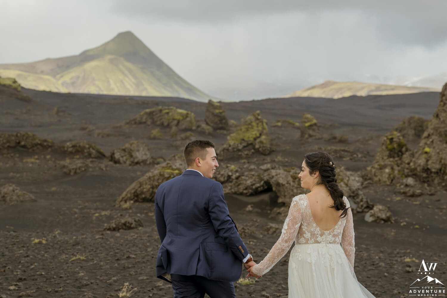 From there, our couple and Iceland Wedding Planner team drove deeper into the highlands. And the landscape changed fast to something other worldly! Also, no people, no buildings. Just wide land and shifting colors. Jazmin and Travis walked together, stopping often, taking it in. It seriously felt like another planet, and for a while, it felt like they were the ones to first discover it! How epic, right?!