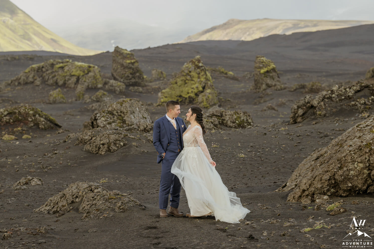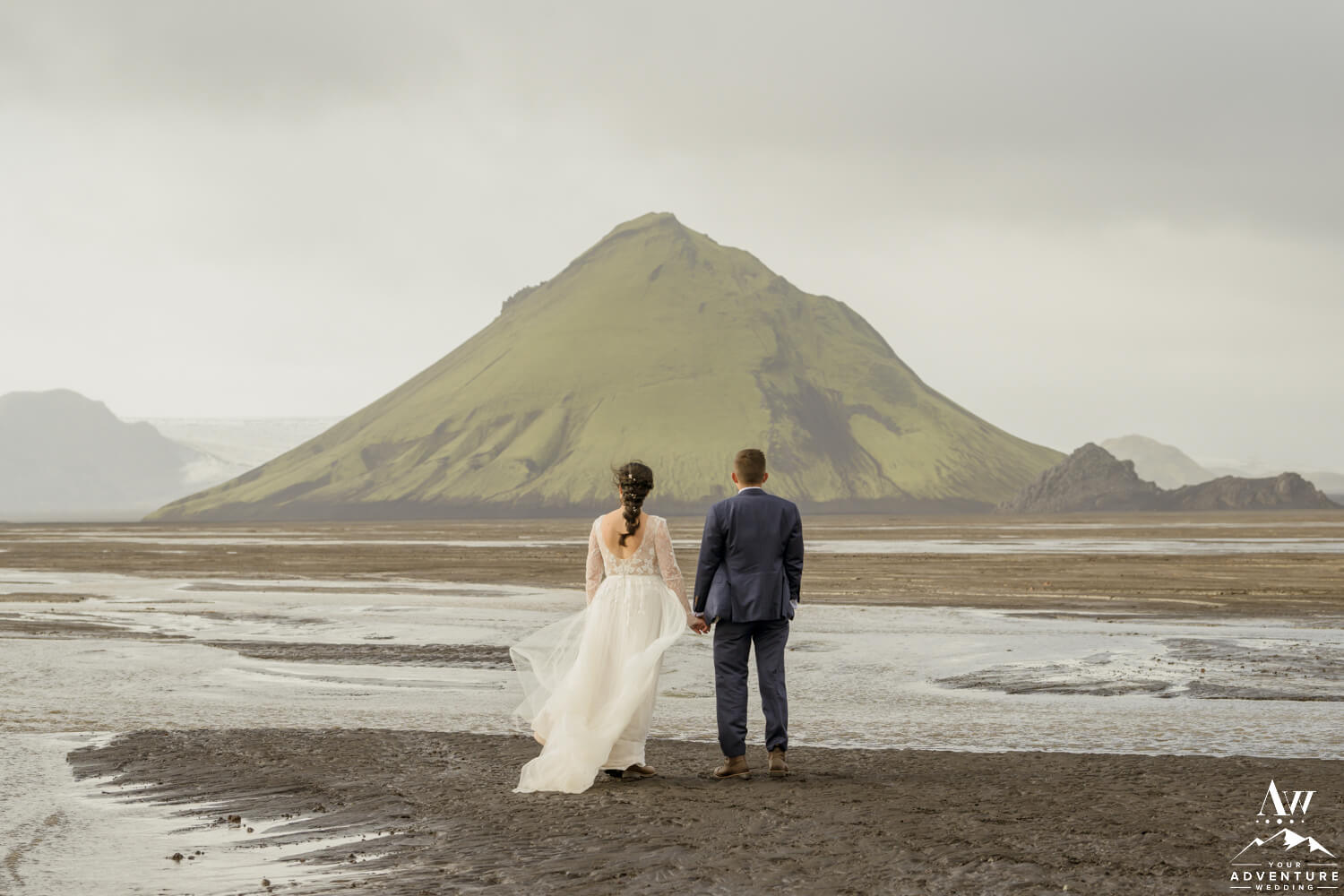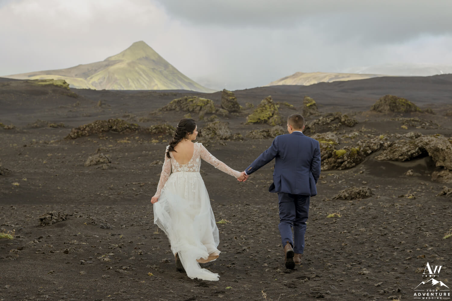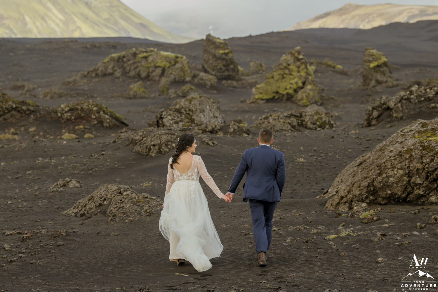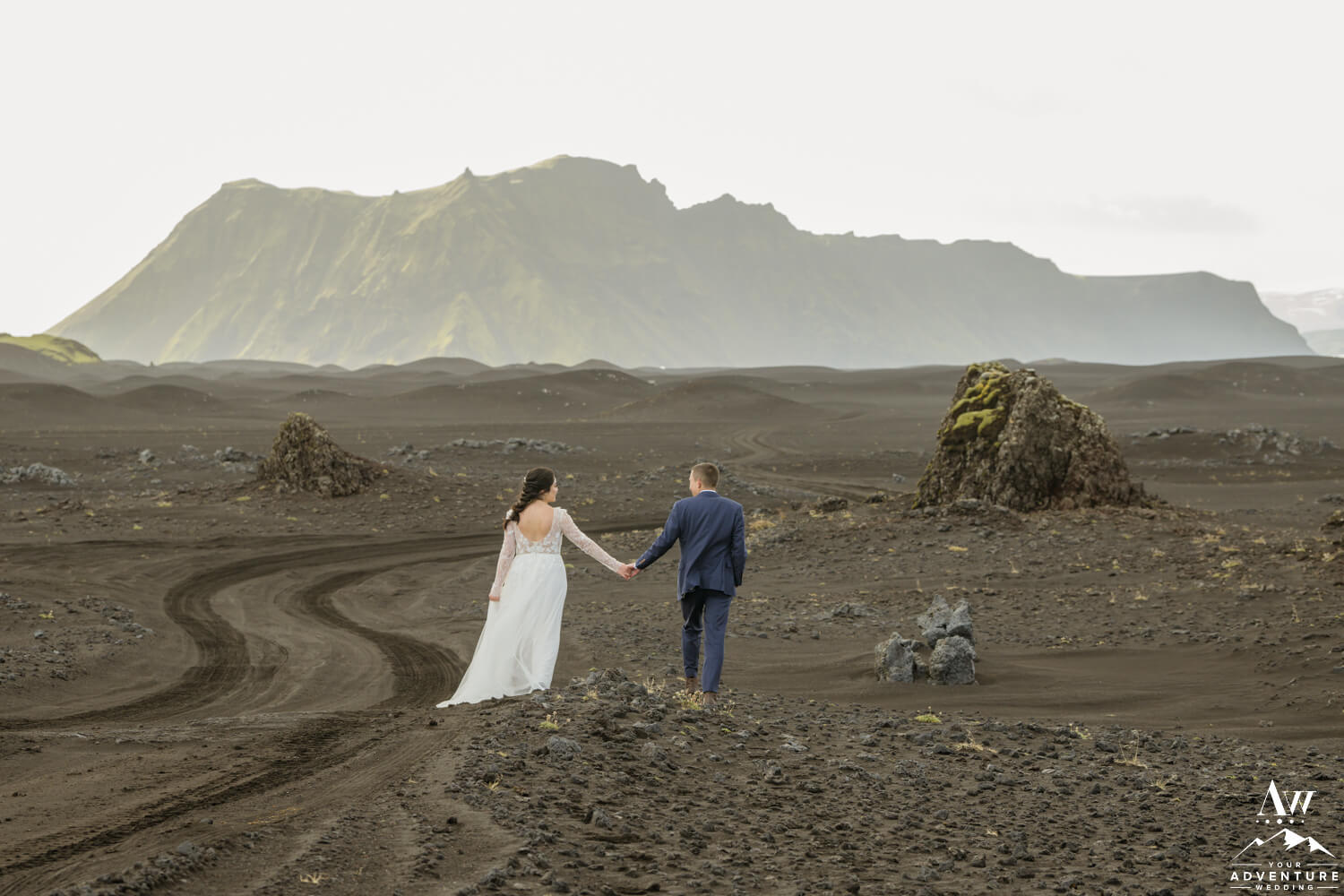 From there, our couple and Iceland Wedding Planner team drove deeper into the highlands. And the landscape changed fast to something other worldly! Also, no people, no buildings. Just wide land and shifting colors. Jazmin and Travis walked together, stopping often, taking it in. It seriously felt like another planet, and for a while, it felt like they were the ones to first discover it! How epic, right?!
