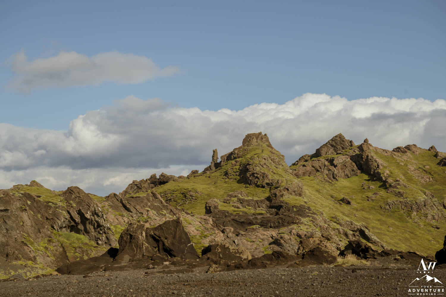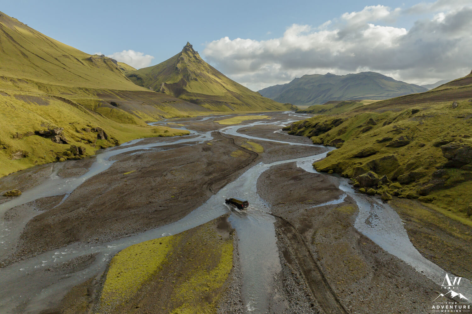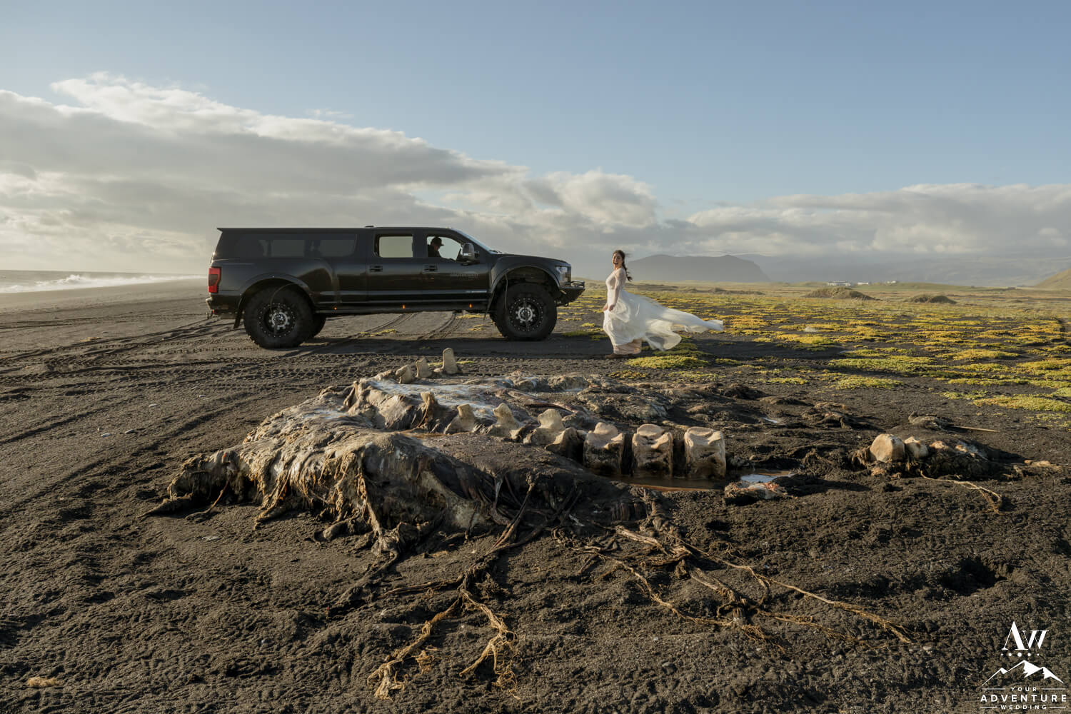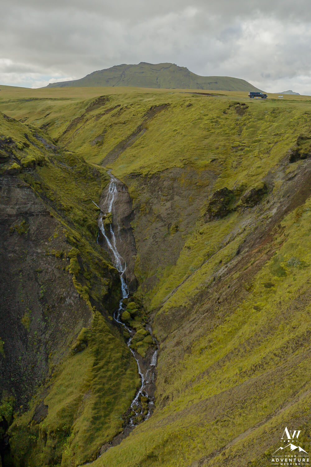 To reach the final locations, we crossed tons of rivers with no bridges. Which is why a super jeep is required to get safely through the highlands. To illustrate, water pushed against the tires adding to the excitement! This part of their Iceland September Elopement was one of the most daring!