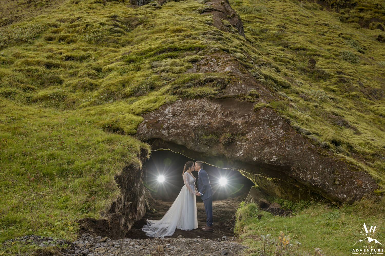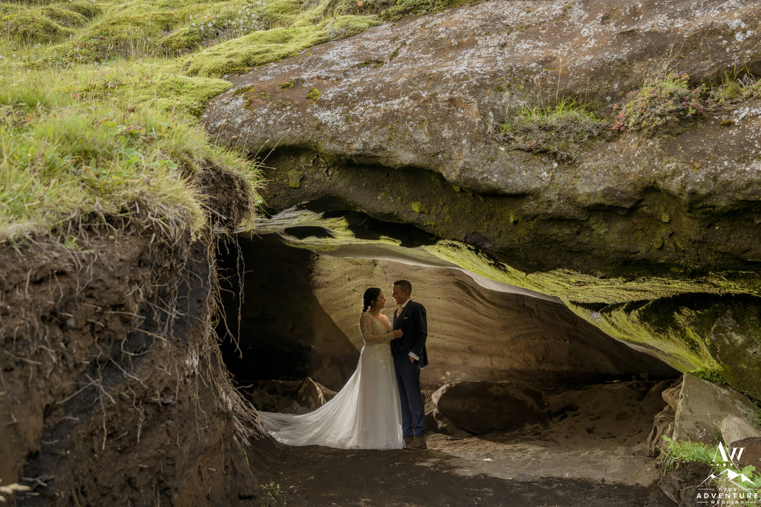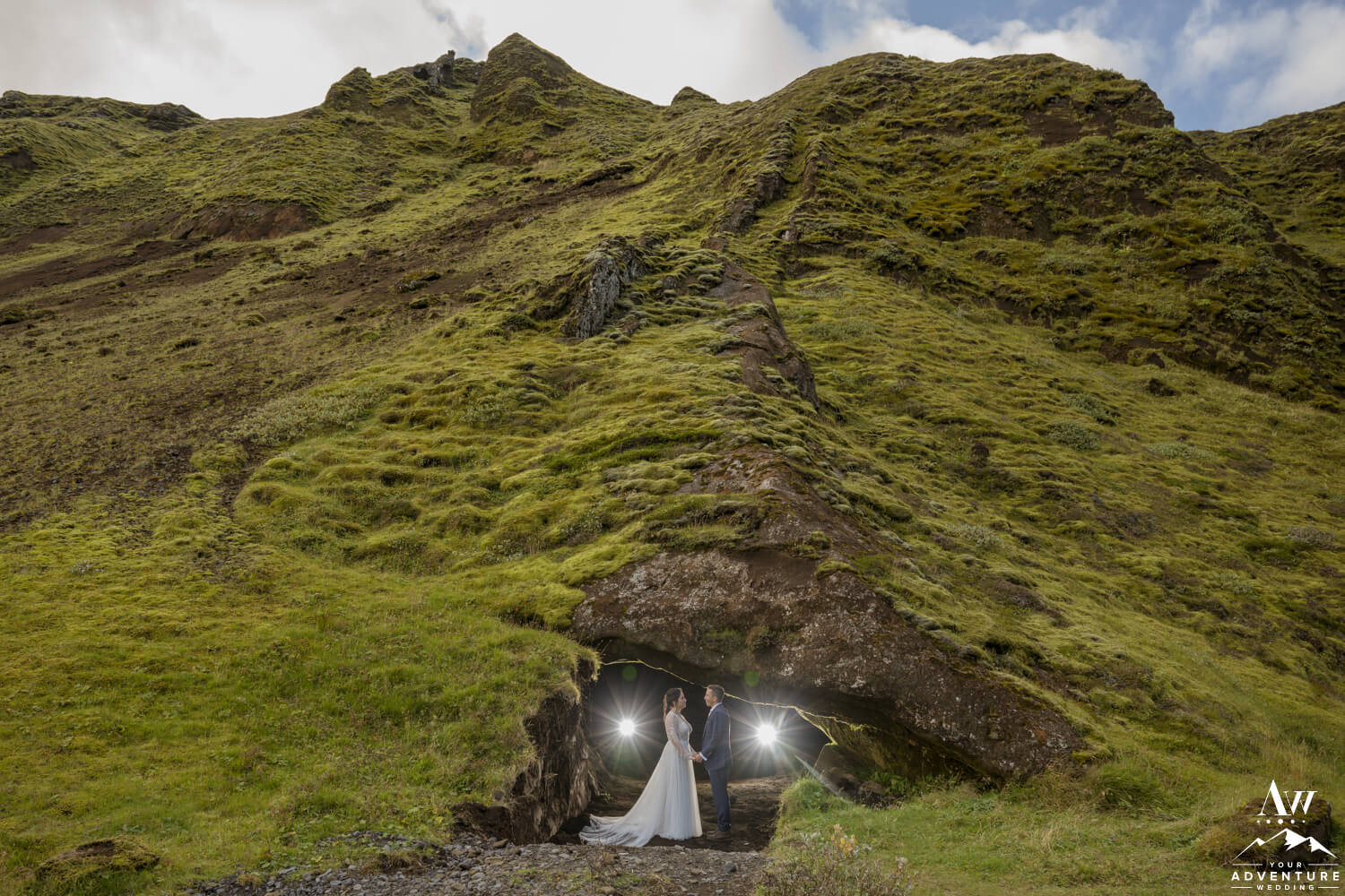 Furthermore, one of the most private moments happened inside a natural cave in the highlands. For example, the sound shifts, the temperature drops. Jazmin and Travis stood close, hands linked, experiencing Icelandic history before heading back out. These wedding photos felt raw and honest, just like the rest of the day, truly!
