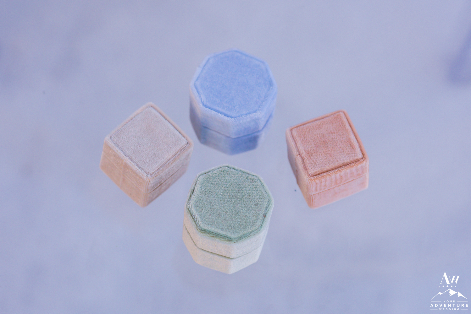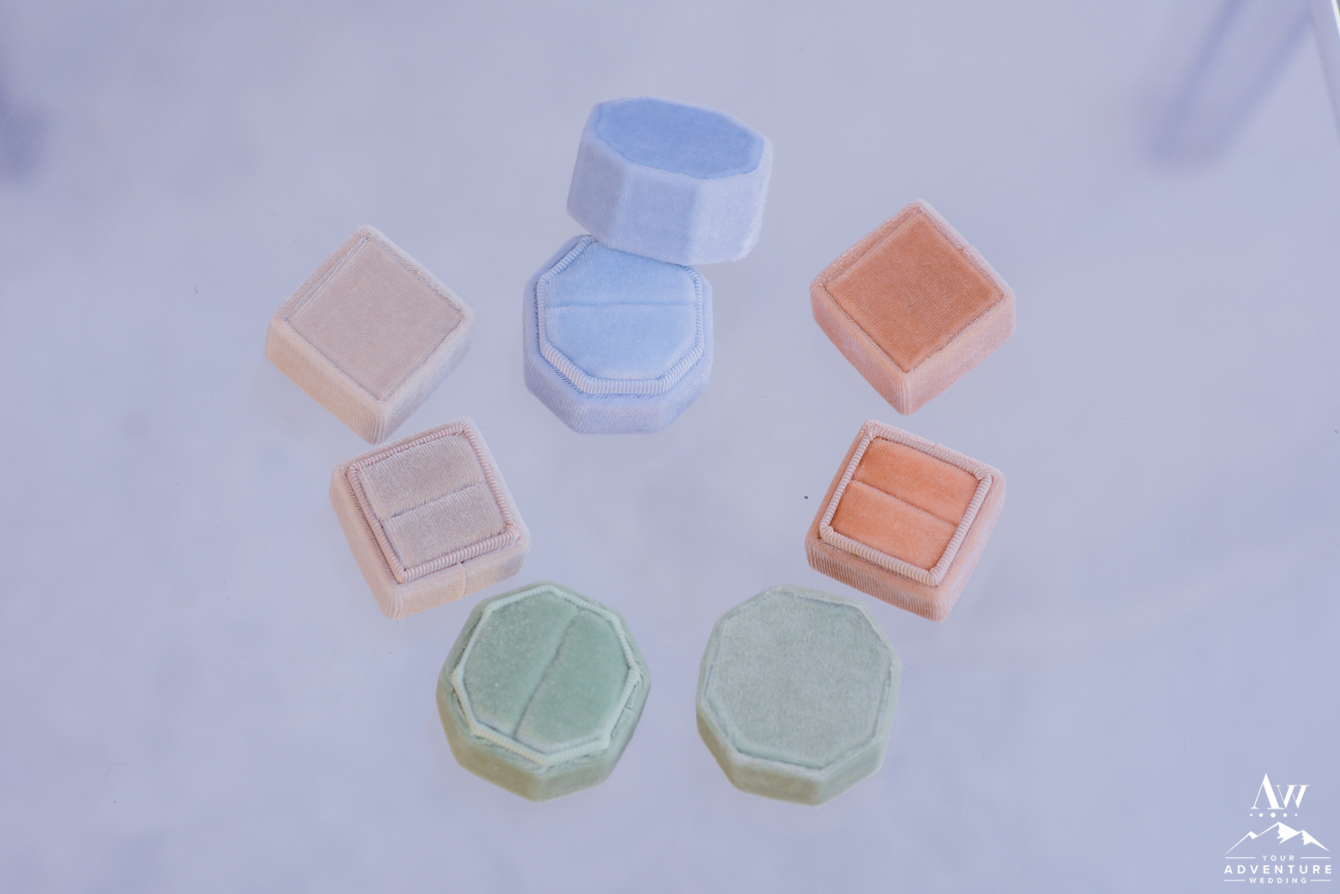 Single Ring Boxes (Blue, Green, Tan, and Peach):