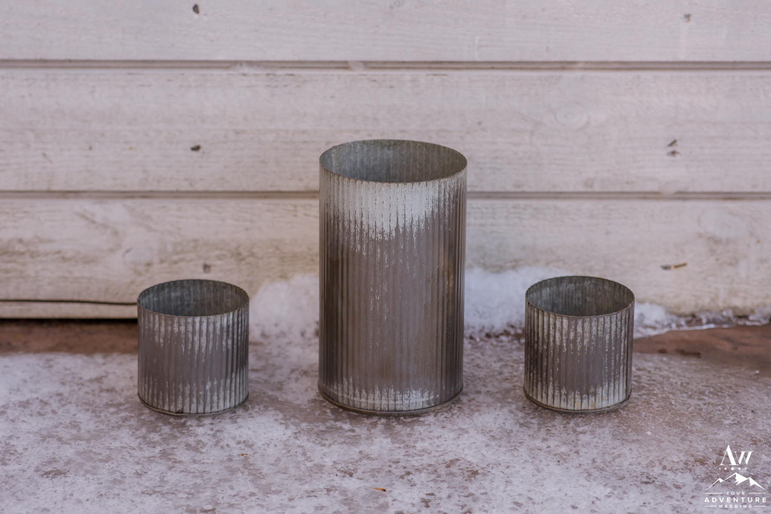 Corrugated Zinc Vases (Large = 7” / Small = 3.5”):