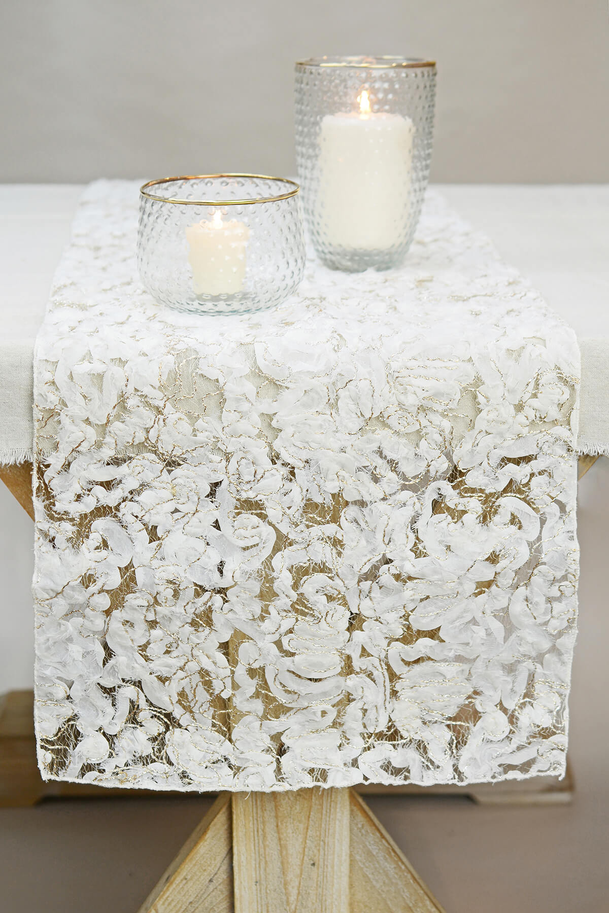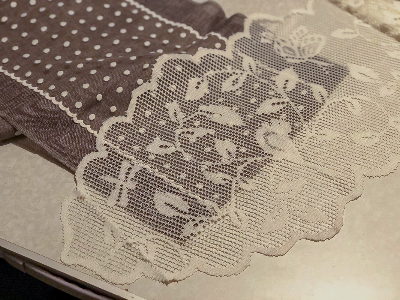 Gray Polka Dot Runners and Ivory Lace Table Runners (Separate):