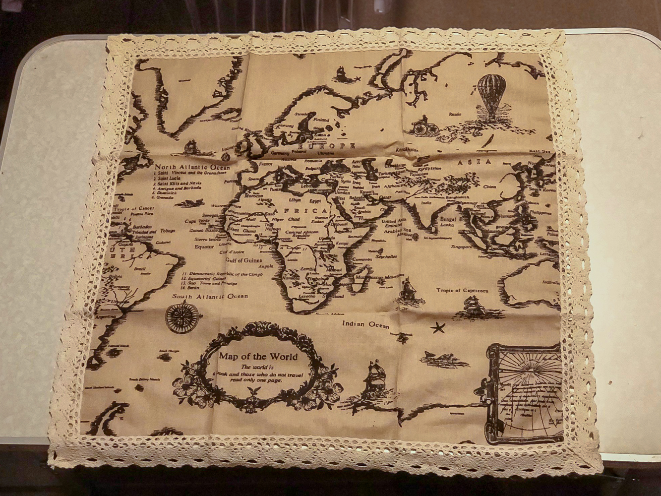 World Accent Cloth and Table Cloth (note the map is printed vertical on the larger cloth):